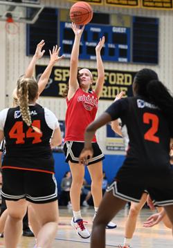 Whether out in transition, cutting hard off an in-bounds or other set play or breaking down a defender, Blair continually took the ball strong to the basket. That was particularly the case early in a 38-33 loss to York Suburban. Blair produced the game’s first five points at the line where she went three times in the first 3:05. Despite running clock conditions, she drew another foul in the first four minutes. Blair’s well-rounded game included assertively setting screens and strong ball-handling. Although she did not connect, Blair also showed off a quick release on catch-and-shoot, 3-point attempts. She finished with a team-high 13 points and three steals.