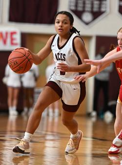 “We’ve both seen each other’s game grow together and being able to see that growth and being able to keep that connection with each other, on the court and off the court, has helped us tremendously,” said Kasmer, whose older cousin Carson Kasmer helped lead the Aces’ boys to a Central League championship last year. “We read each other, we know where we’re going to be on the court, regardless of if we see something, if I call for a screen, we just read off each other and play off each other really well.”