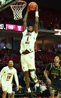 Jamai Felt (above) throws down a dunk during Temple's win. (Photo: Josh Verlin/CoBL)