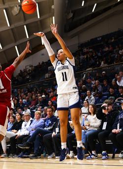The Wildcats took a commanding 44-24 lead into intermission, thanks to Allen’s team-high 12 points on four-for-four shooting from three-point range. The 12 points put Allen two points shy of her season-high 14, which she scored in the Wildcats’ 84-73 victory over JMU on Nov. 16—and five off her previous career-best 17 points the 2022 Archbishop Wood graduate scored against Boston College in Villanova’s 76-70 first-round Women’s Basketball Invitation Tournament victory last season.
