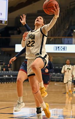 Reginna Baker (22) becomes one of the Saints' leaders as a junior. (Photo: Josh Verlin/CoBL)