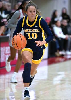 Drexel's Laine McGurk scored 20 points and combined with Amaris Baker on 44 total points against St. Joe's. (CoBL Photo/Mark Jordan)