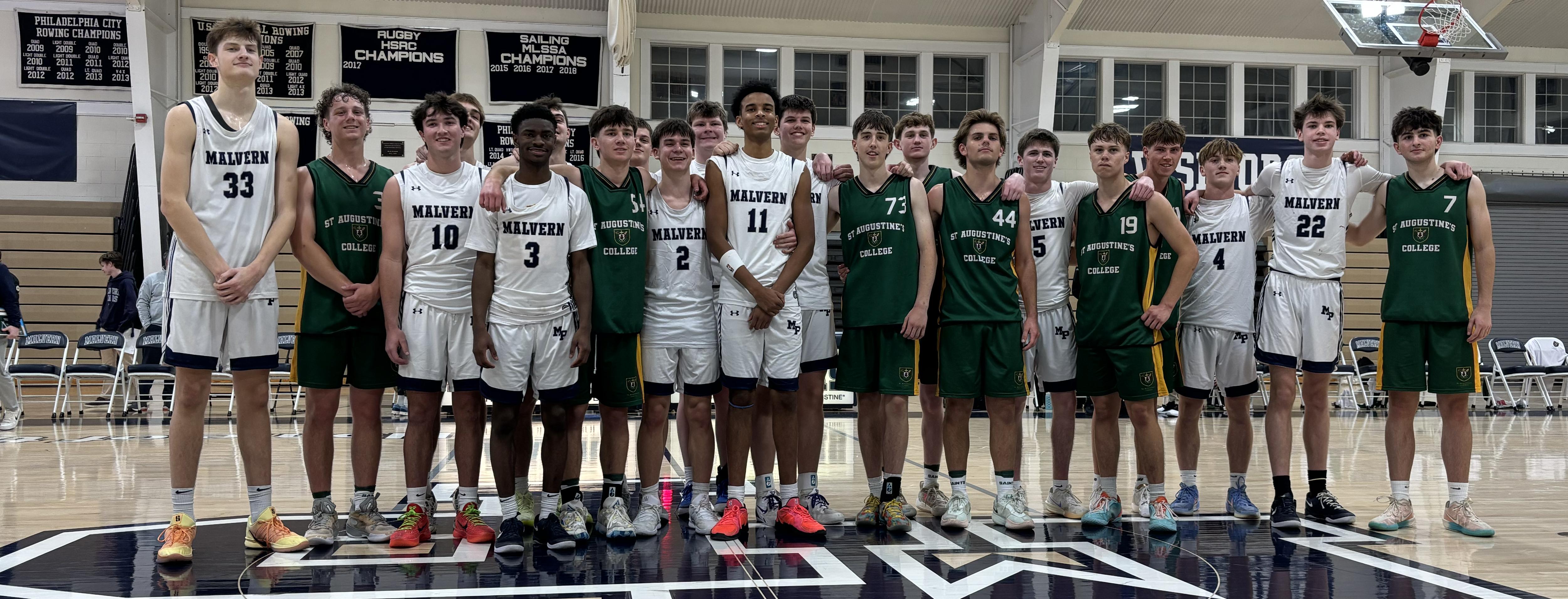 Malvern Prep and St. Augustine's players pose for a photo after Wednesday night's game. (Photo: Josh Verlin/CoBL)