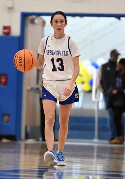 It was a strong showing for the DiTrolio sisters in Springfield’s big win over Merion Mercy. Adi, the younger sister by two years, scored 14 points on 6-of-9 from the floor, adding four rebounds and two steals to a balanced team effort before spending the fourth quarter on the bench celebrating an impending victory. The 5-6 guard knocked down her only 3-point attempt and free throw, had a tough take for an and-one and handled the ball deftly against the MMA defense.