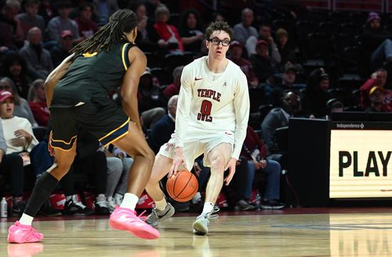 Temple (11-5, 3-0 American) struggled to put ECU (5-10, 0-2 American) away, leading 36-21 at the break but watching its lead crumble to just five in the final five minutes, but a litany of key free throws by the likes of Derrian Ford and Babatunde Durodola helped maintain the advantage. Ford had 16, but Gavin Griffiths was the top scorer for Temple, dropping 24 while connecting on five of his seven three-point attempts.