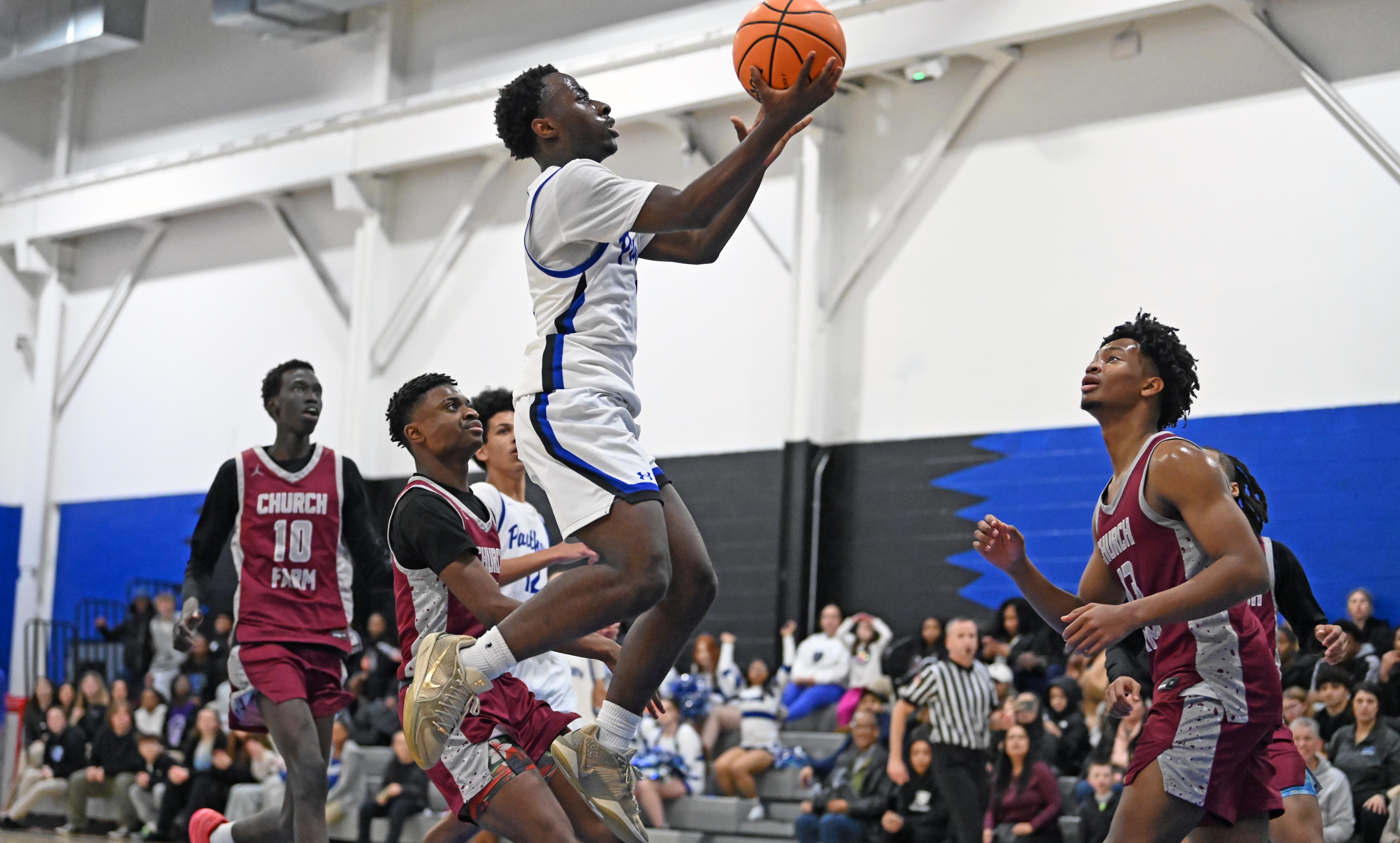 Senior guard Carl Raymond scored 16 points and grabbed nine rebounds to lead the way for Church Farm, a boarding school which hadn’t played since Dec. 17 due to its non-local students not being around for the holidays. Junior forward Deng Mabior added 10 points and seven rebounds.