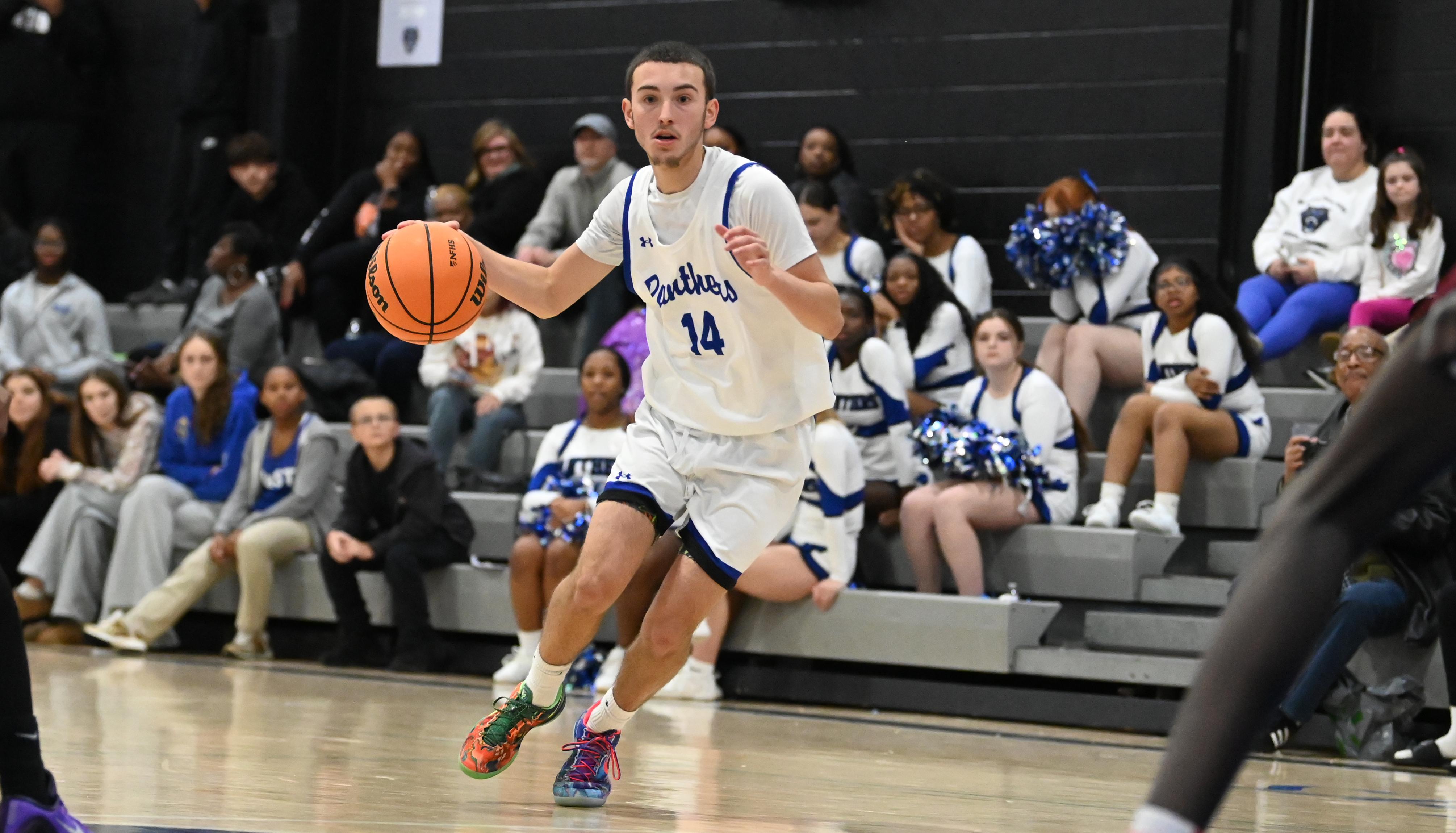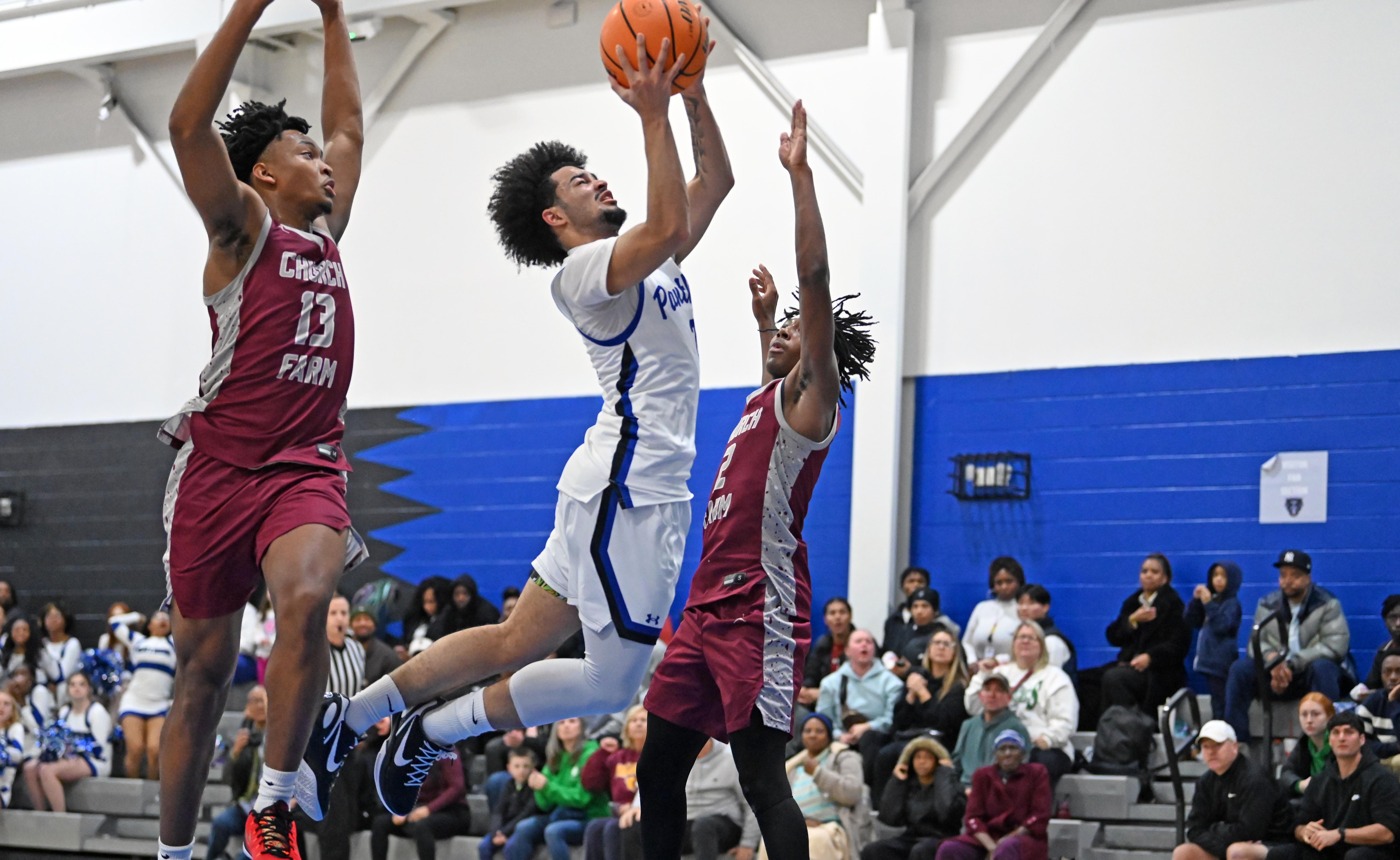 The Panthers (11-2, 7-0) got a stat-sheet stuffing performance from senior guard Shawn Nunez to lead three in double figures as the Panthers emerged victorious over the Griffins (6-1, 4-1) in a physical, intense game that featured multiple foul-outs, 48 combined foul shots, 37 combined turnovers and the ejection of Church Farm head coach Jonathan Guarente less than two minutes into the second quarter.