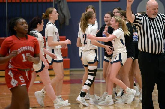 A quick PW burst to end the fourth closed the gap to six, and PW sophomore Grace Harvey knocked down a 3-pointer to get the 11-point Souderton lead down to eight, 28-25, with 7:25 to play. Fadden found Herron for another 3-point make to answer, but threes by Olivia Patete (11 points) and Harvey evened the score with 2:10 to play.