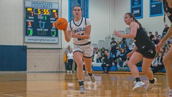 Immaculata sophomore Carly Coleman, a Cardinal O'Hara graduate, is leading the Mighty Macs in plenty of categories on the court but also off the floor as a team captain. (Photo courtesy of Johnathan Fervier)