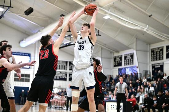 The star 6-5 forward found paydirt in the second half, scoring 23 of his game-high 27 points (11-of-15, 1-of-4 3PA, 4-5 FT) in the final 16 minutes, to go along with nine rebounds and three assists. On a night when Harken scored his 1,000th point, he led his team to a 73-63 win and got the Friars to a 5-1 record in Inter-Ac play — trailing just The Haverford School (6-0) for first place.