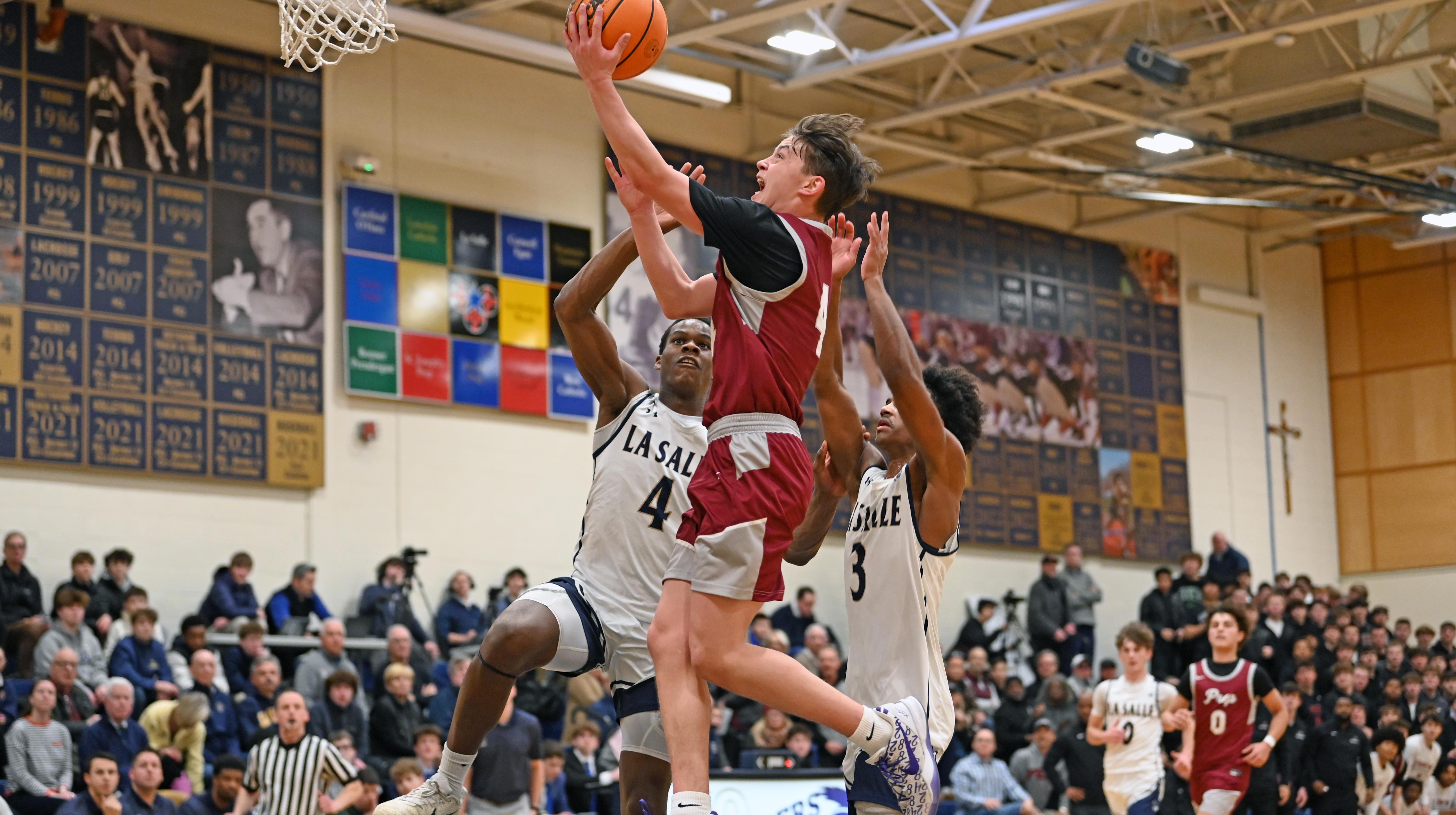 Jayden Howlett (4) attacks the basket during the first half of Prep's win over La Salle on Monday, Feb. 2., 2026. (Photo: Josh Verlin/CoBL)